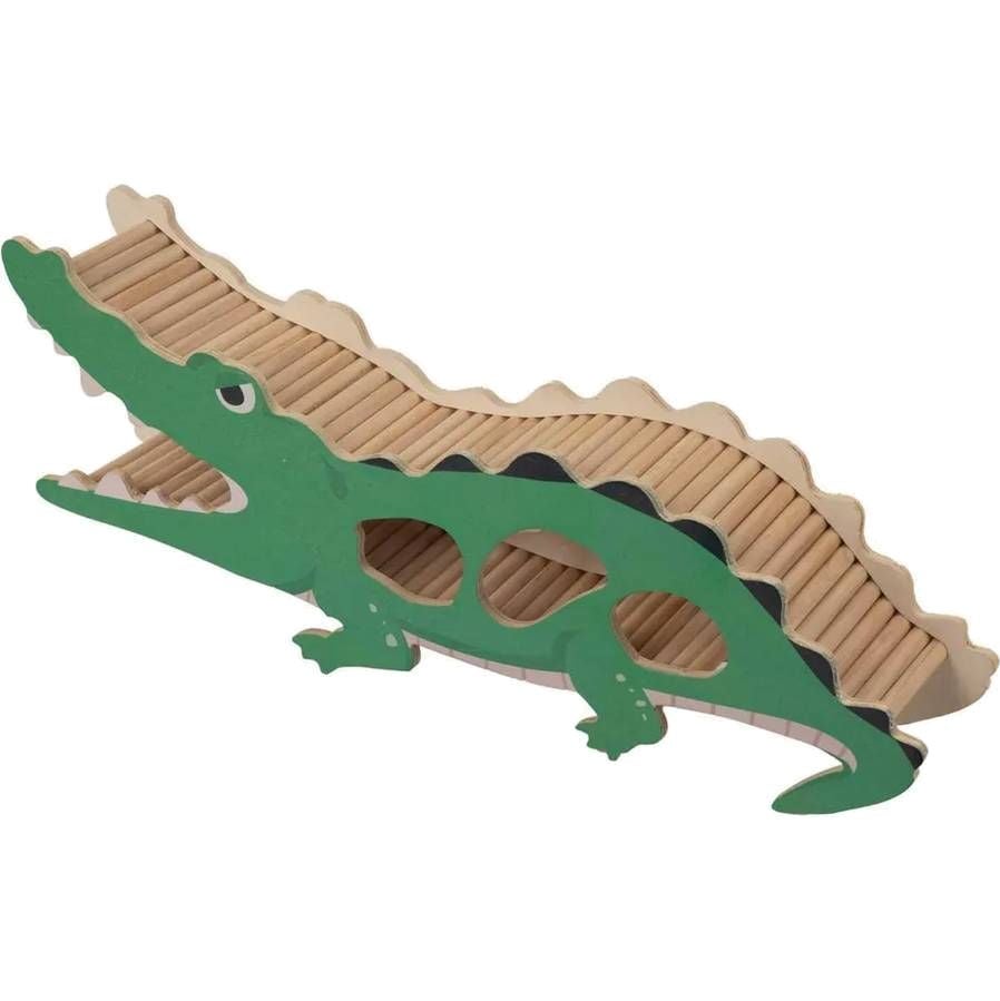 Hauska naulaton krokotiilipesä gerbiileille, hiirille ja hamstereille. Pesä toimii siltana ja piilopaikkana. Sen voi sijoittaa lasia vasten, jolloin krokotiili toimii myös watch boxina.