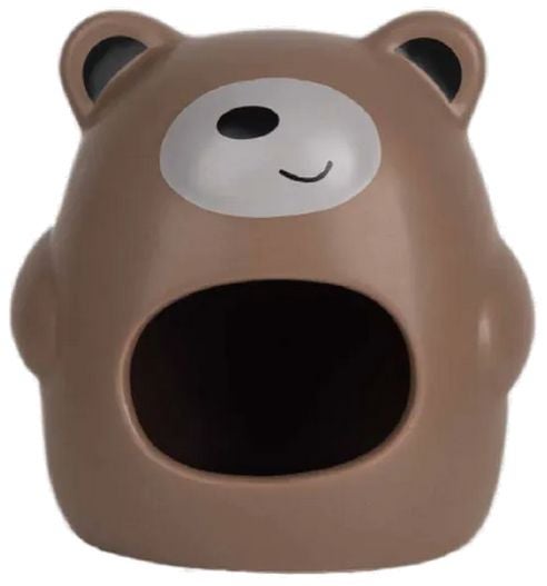 Keraaminen karhun muotoinen pesämökki hiirille, gerbiileille, kääpiöhamstereille ja pienimmille syyrianhamstereille. Isot naarassyrkit eivät välttämättä mahdu pesään kunnolla.