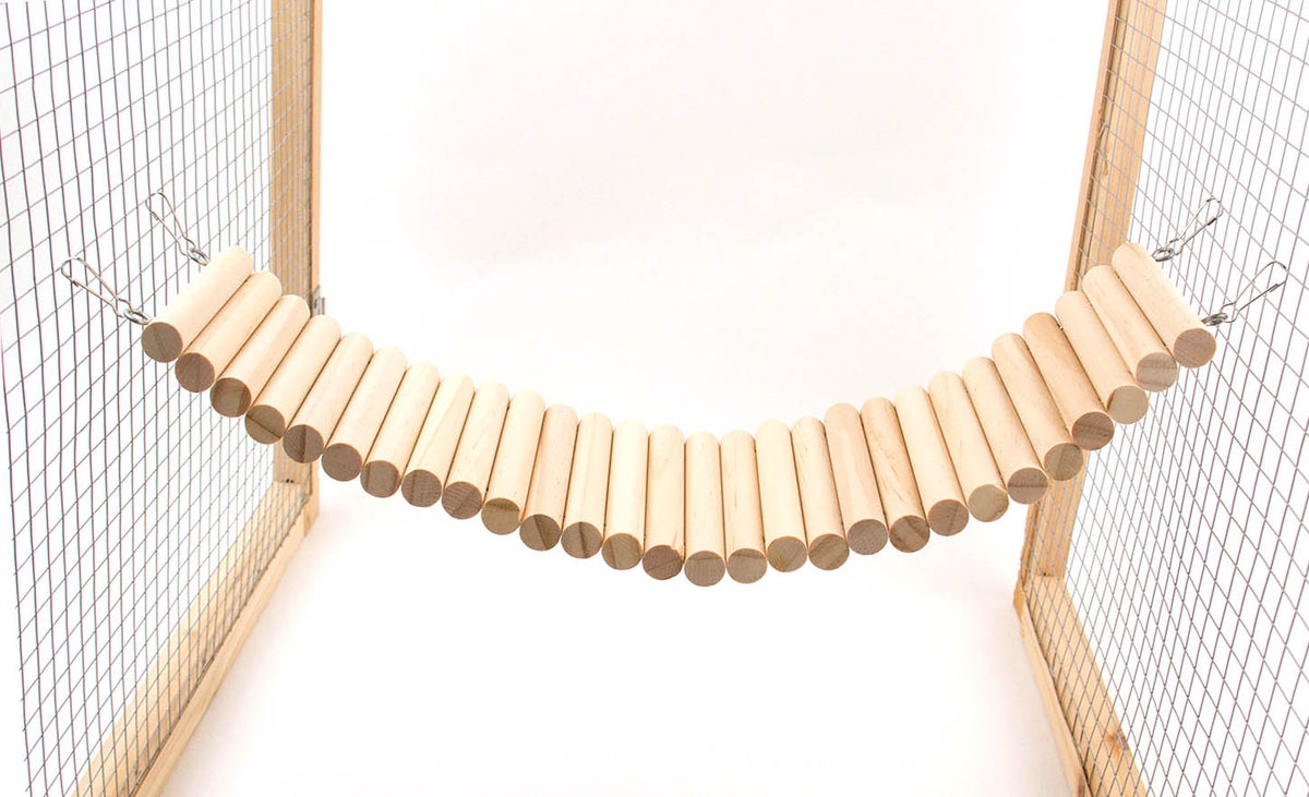 1,5 cm paksut puut kestävät hyvin nakertelua. Tukeva rautalanka antaa mahdollisuuden muotoilla siltaa. Häkkiin ripustettuna silta kestää isommankin chinchillan, rotan tai degun painon.