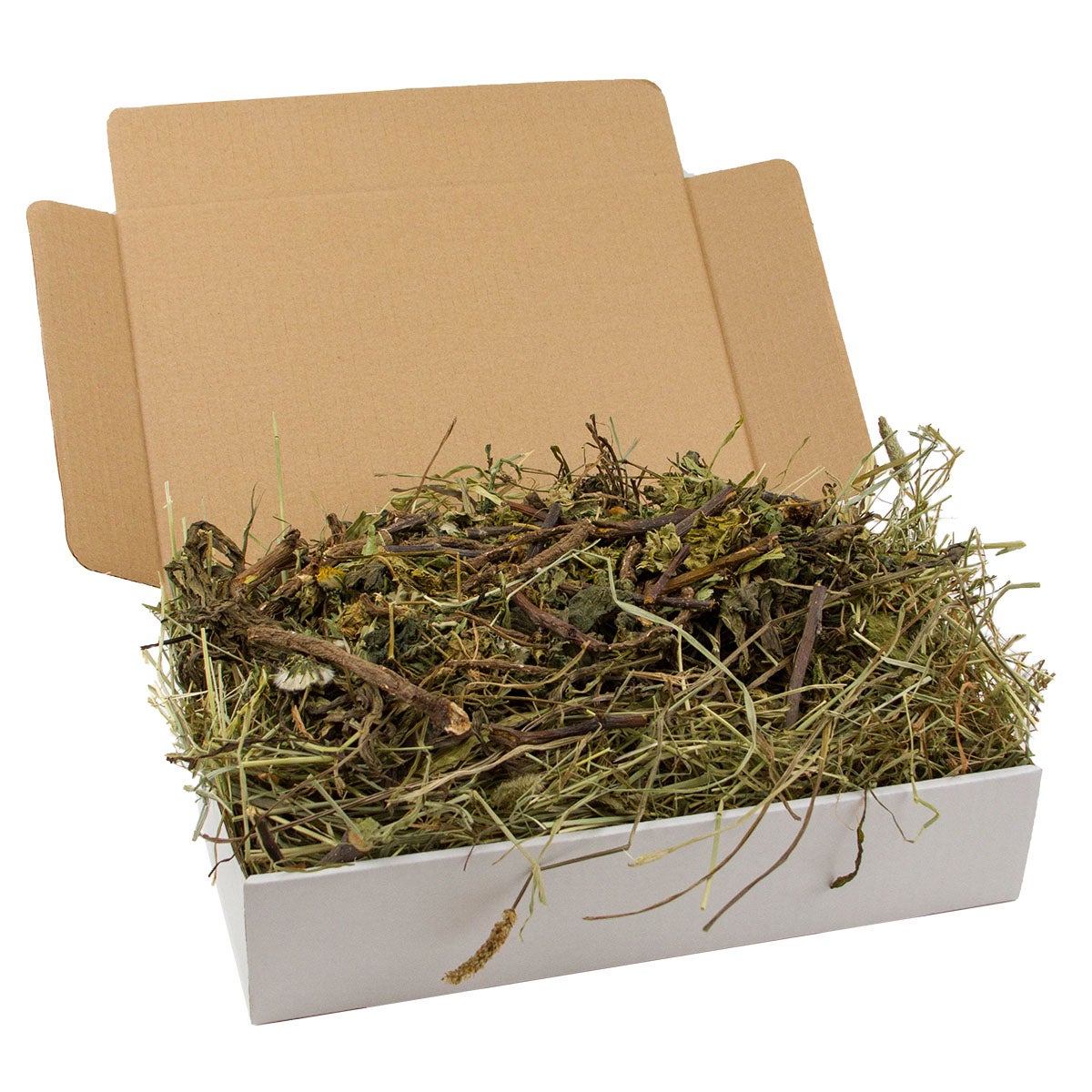 Laatikollinen herkuteltavaa naposteltavaa kaneille, deguille ja marsuille. Avaa laatikko ja anna lemmikkisi valita suosikkinsa. Laatikossa on pohjana kotimaista timoteiheinää. Päälle on ripoteltu yrttejä ja viimeisenä juuria ja oksia. Eläimet saavat toteuttaa vaistojaan ja kaivaa laatikosta heinän seasta tuoksuvia herkkuja tai nakerrella eteen tulevia oksia. Anna laatikko kerralla syötäväksi tai tarjoa silloin tällöin hetken aikaa.