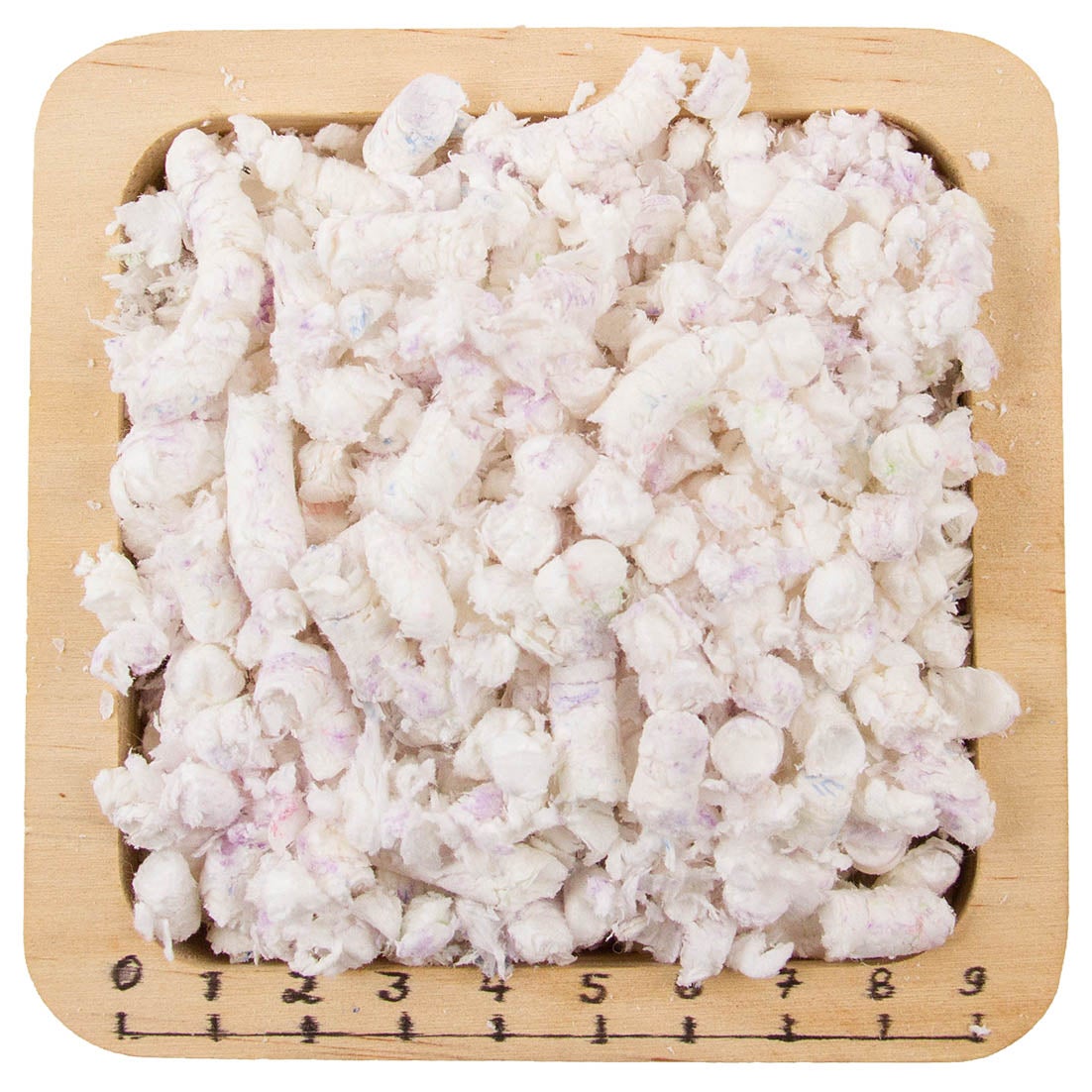 Kierrätysmateriaalista valmistetut pelletit toimitetaan paperipussissa, jonka voi kierrättää käytön jälkeen pahvien mukana. Pelletit ovat kauniin valkoisia, joissa voi nähdä erästä riippuen eri väripilkkuja.