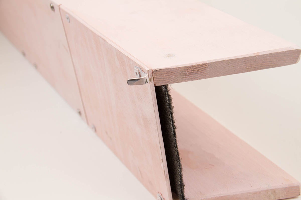 Suomessa käsityönä valmistettu ramppi marsuille. Täydellisesti taikakuutioaitauksiin sopiva ramppi, jossa tukevat kiinnityskoukut. Pohjassa on matto antamassa tassuille pitoa. Maton saa helposti irti ja takaisin pesua varten tarrojen avulla. Tukevasta puusta valmistettu ramppi on sopivan kokoinen yhden marsun kerrallaan kiivetä ylös tai alas. Korkeat reunat estävät eläimiä hyppäämästä pois rampilta kesken matkan.